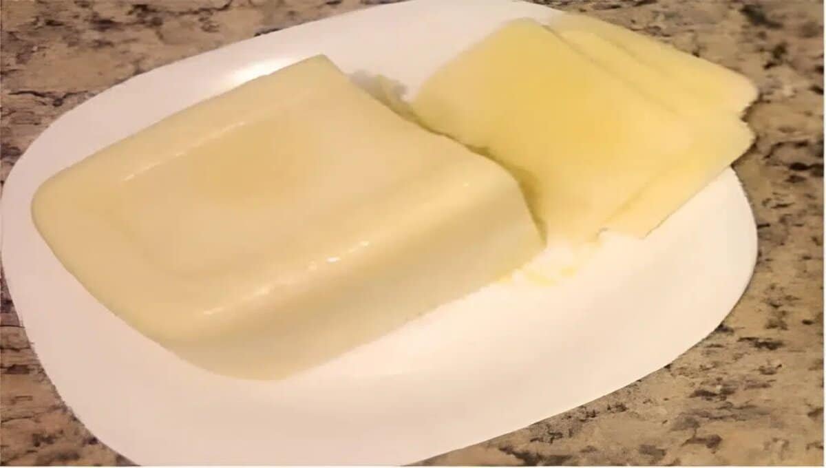 - Apague o fogo e passe o queijo para um pote de sorvete, alisando-o bem para ficar uniforme.