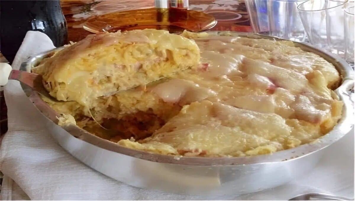 - Faça mais uma camada de muçarela e presunto, seguida de uma camada de arroz e cubra com o restante da muçarela.