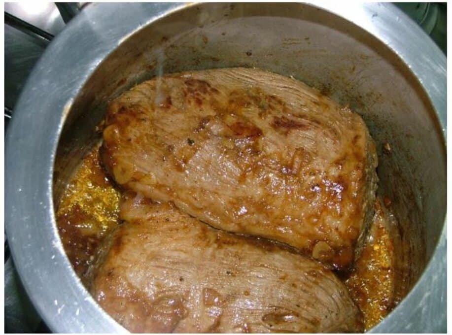 - Em suma, no dia seguinte corte a carne e leve ao fogo para apurar só mais um pouco e desligue.