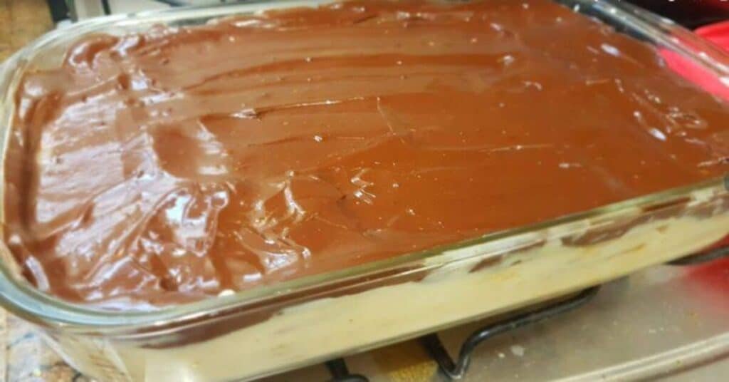 - Na hora de servir este pavê simples e rápido com biscoito de champagne não deixe de peneirar chocolate ou cacau em pó abundantemente sobre ele, de forma a conseguir uma camada uniforme.