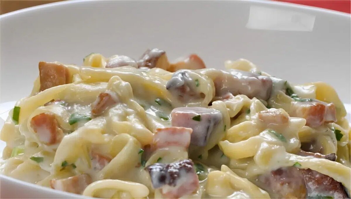 Macarrão com molho branco e bacon fácil rápido e uma receita que a família vai amar