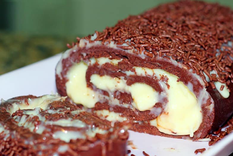 Rocambole de Chocolate e creme branco Perfeição de sobremesa pra fazer Hoje