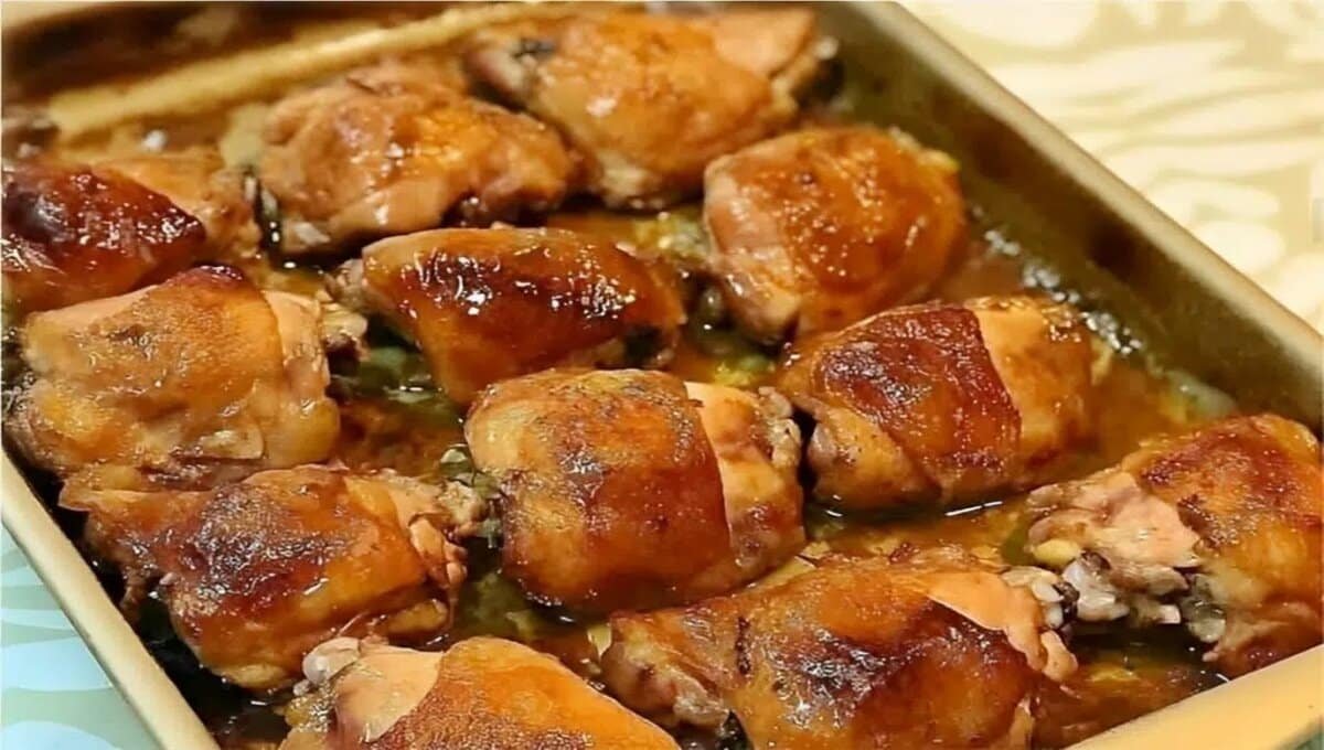 Sobrecoxa de frango assada super saborosa